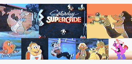 SATURDAY SUPERCADE premiered In 1983, You play these on Games. This show had five segments that it played. During the first season they were "Donkey Kong", "Donkey Kong Jr.", "Frogger", "Pitfall", and "Q*Bert". After the first season, "Frogger" and "Pitfall" were dropped and two new cartoons were added. The two new ones were "Kangaroo" and "Space Ace".